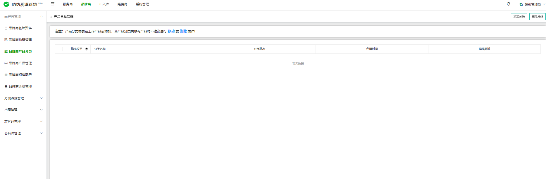 设置:品牌商--品牌商产品分类--添加分类