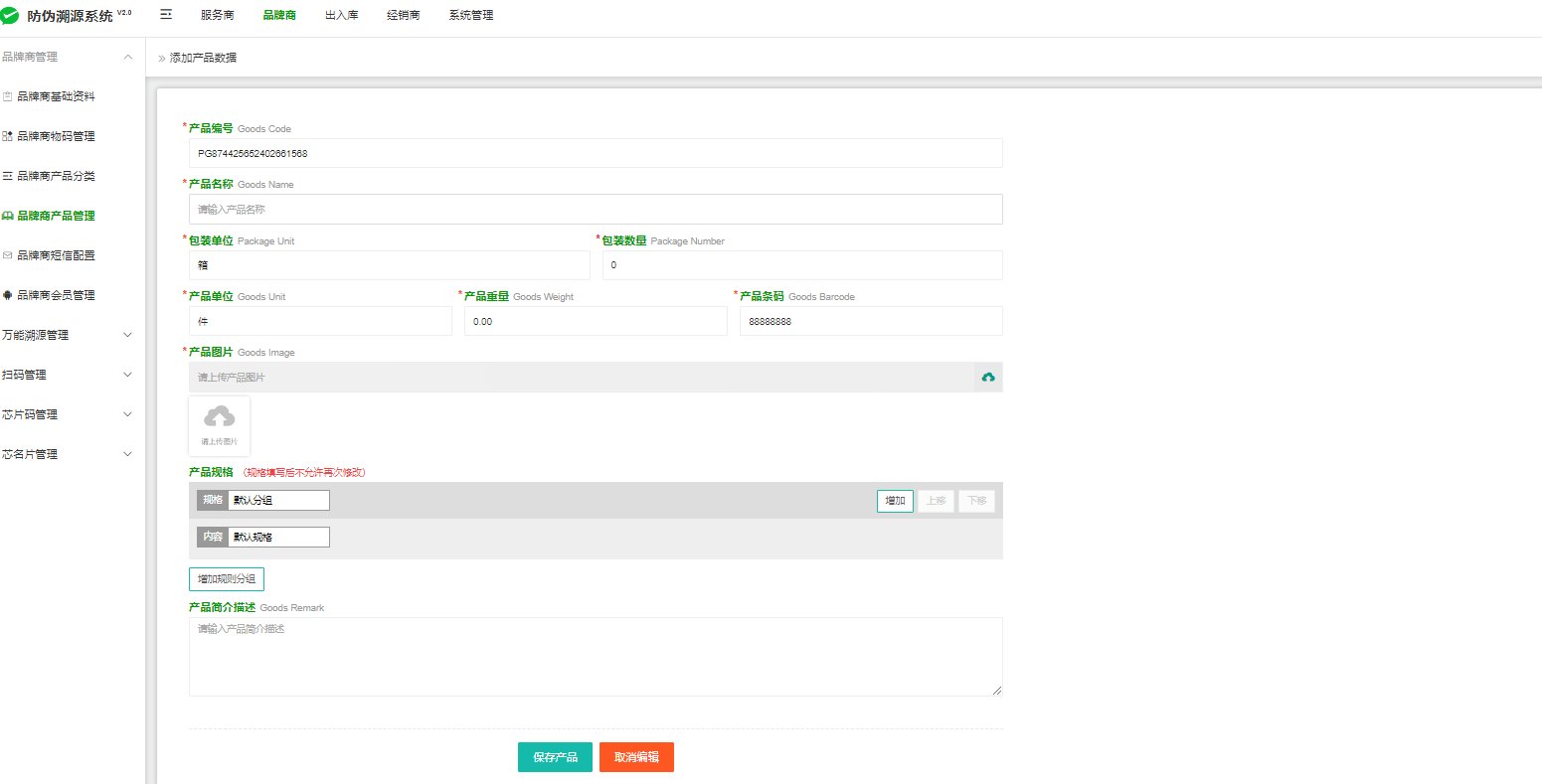 设置:品牌商--品牌商产品管理--添加产品