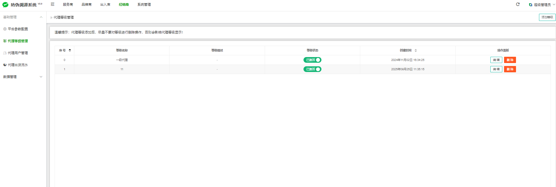 设置经销商级别(从小到大)