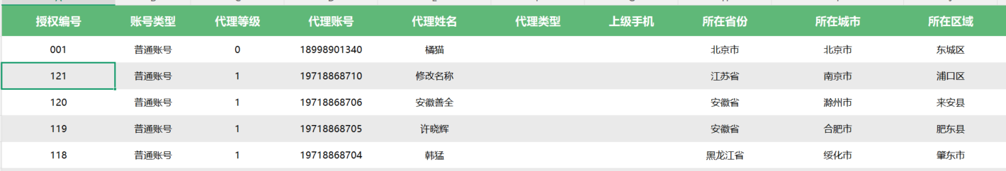 注意事项:excel导入表格:需填写授权编号(可纯数字或者字母加数字),账号类型:普通账号,代理等级(按照序号等级填写),代理账号(手机号码或者11位数),代理名称,所在省份,城市,区域